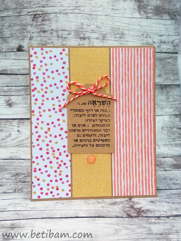 הפעם בחרתי בגודל כרטיס של 15X12 ס"מ מתקפל עם תוכן פנימי, כך שאת קארדסטוק הבסיס חתכתי לגודל של 30X12 ס"מ וחרצתי לאורכו ב 15 ס"מ