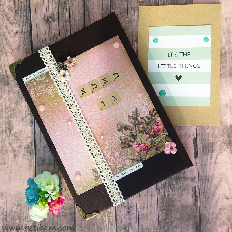 בתמונות תראו את המחברות האישיות שעיצבנו + כרטיס הברכה + מגנט הפרחים הצבעוני והחמוד.
