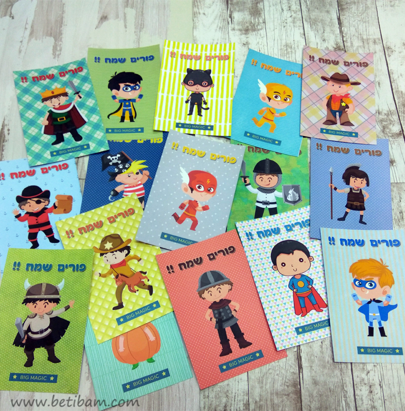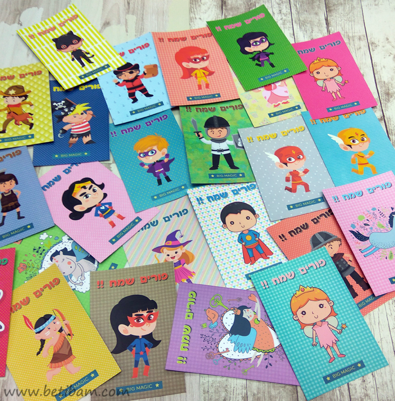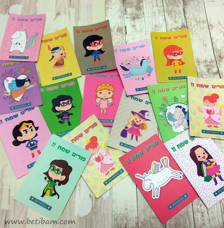 שינסתי מותניים, ידיים ואת המחשב, עיצבתי 40 גלויות שונות שמתאימות לבנים ולבנות, ואצתי לרותם מדפוסקי שידפיס לי אותם במקצועיות בסבלנות לכל השגעונות שלי :)