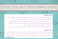 לדוגמא: כל משפחה צריכה להביא בין 3-4 מתנות שכל מתנה היא עד סכום של 30 ש"ח. ז"א שאפשר ללכת לחנויות הסטוק למיניהן ולקנות שם מס' רב של מתנות שוות כי יש הרבה מוצרים שווים וטובים שמגיעים גם ב 5 -10 ש"ח,