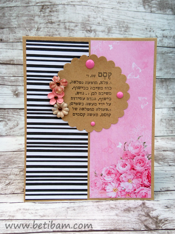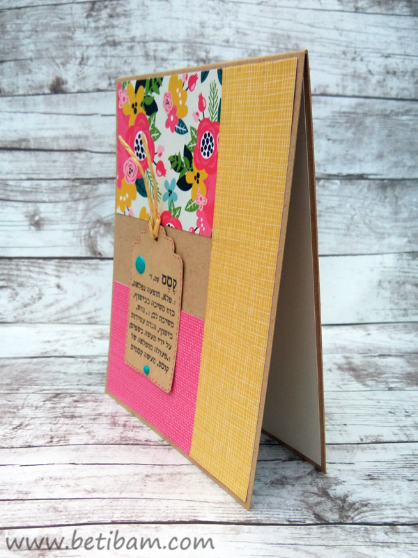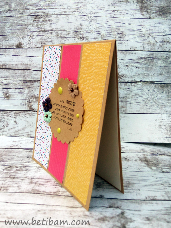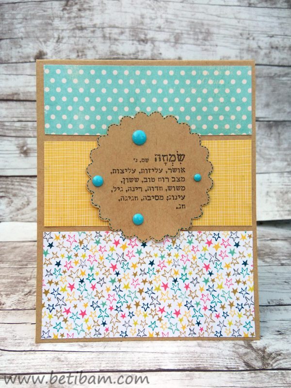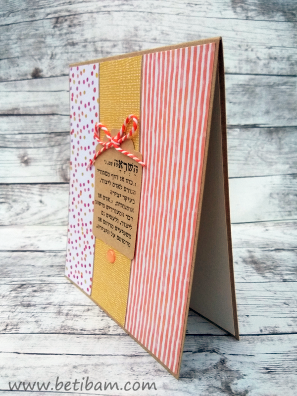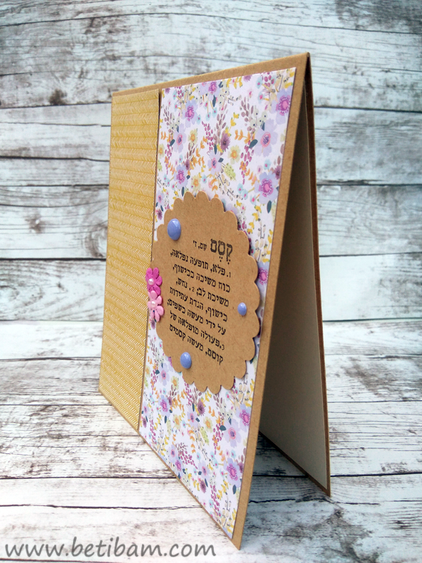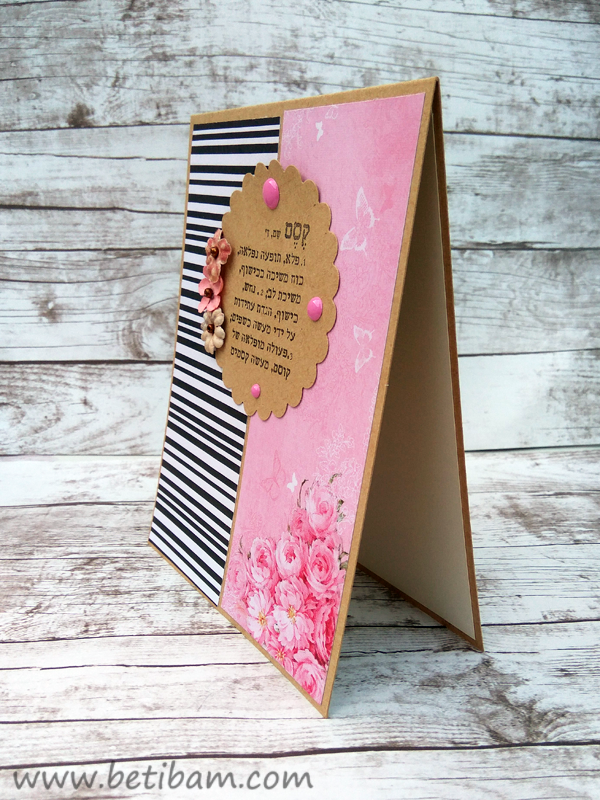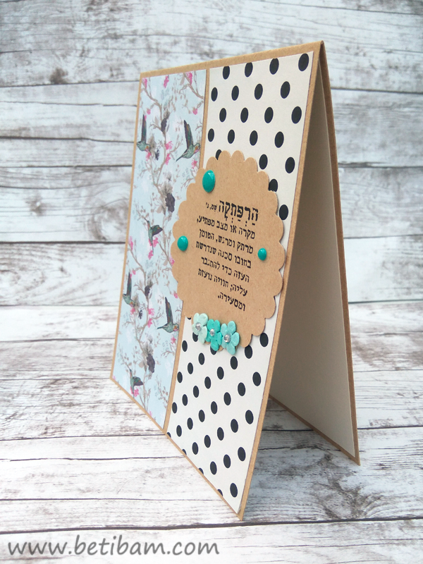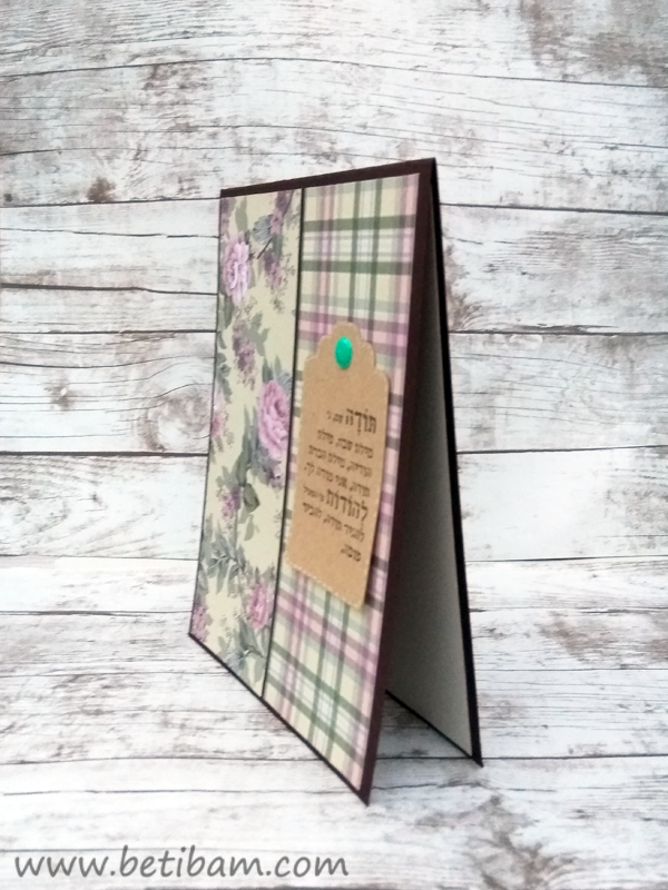 הפעם בחרתי בגודל כרטיס של 15X12 ס"מ מתקפל עם תוכן פנימי, כך שאת קארדסטוק הבסיס חתכתי לגודל של 30X12 ס"מ וחרצתי לאורכו ב 15 ס"מ