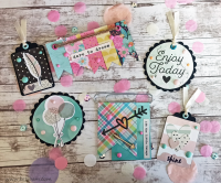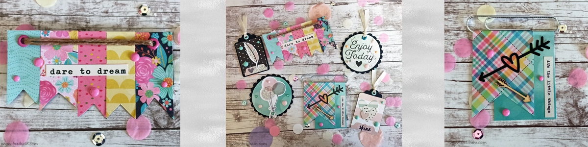 בחרתי להכין 6 קישוטונים שונים שמעוצבים כ: תגיות, תגית סקאלופ, קישוטון בשילוב דגלונים כבסיס, וקישוטון שבנוי על גבי אטב משרד ענק.