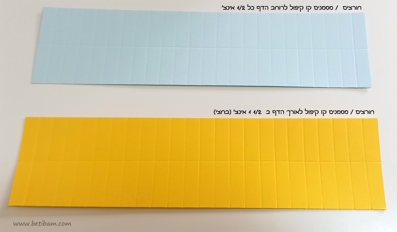 חורצים / מסמנים קו קיפול ברוחב הדף כל 1/2 אינצ', ולאורך הדף ב 1/2 1 אינצ' (בחצי).