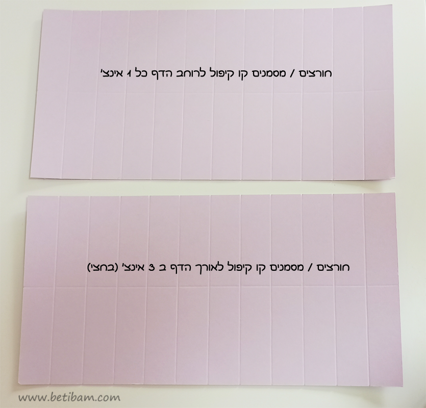 חורצים / מסמנים קו קיפול ברוחב הדף כל 3/4 אינצ', ולאורך הדף ב 2 אינצ' (בחצי).