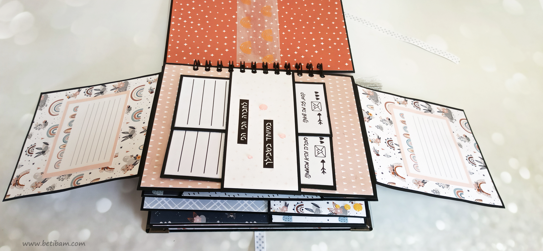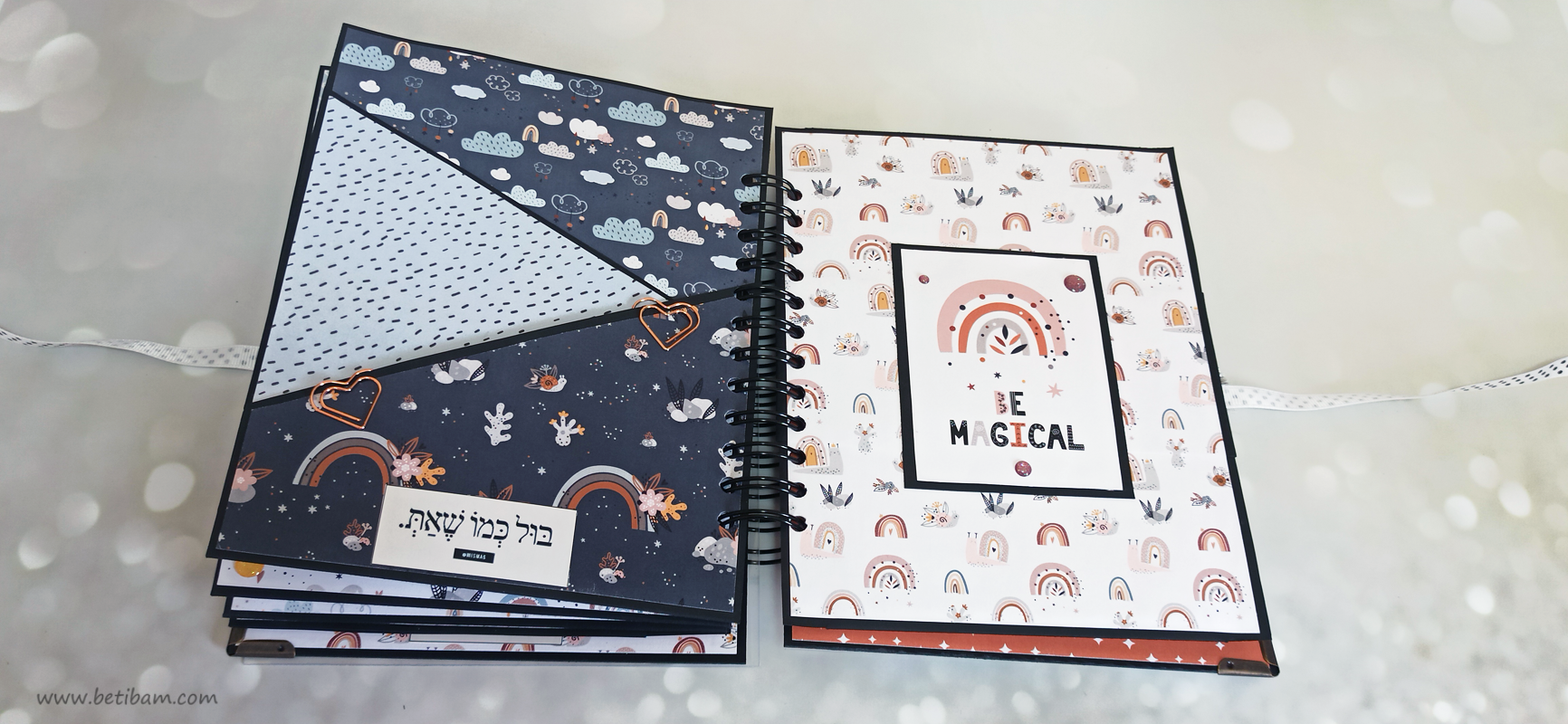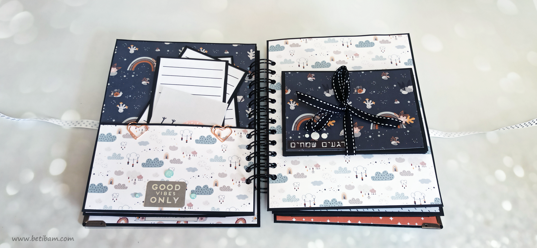 לאור הבקשה, אני החלטתי להשאיר את האלבום בגודל של מחברת, אבל עם עיצוב שהוא יותר אלבום ברכות קטן, לכן גם השארתי את הכריכה ככריכת ספירלה כיפית.