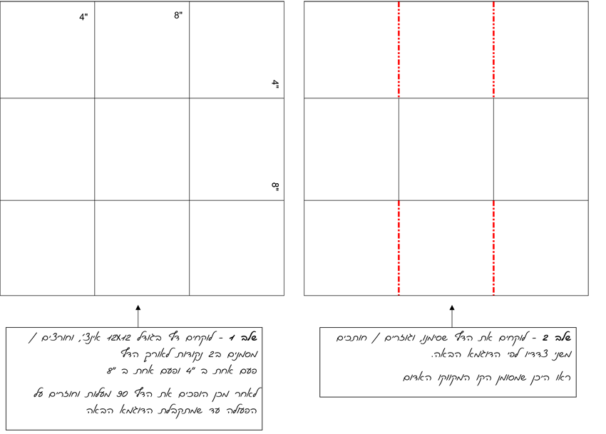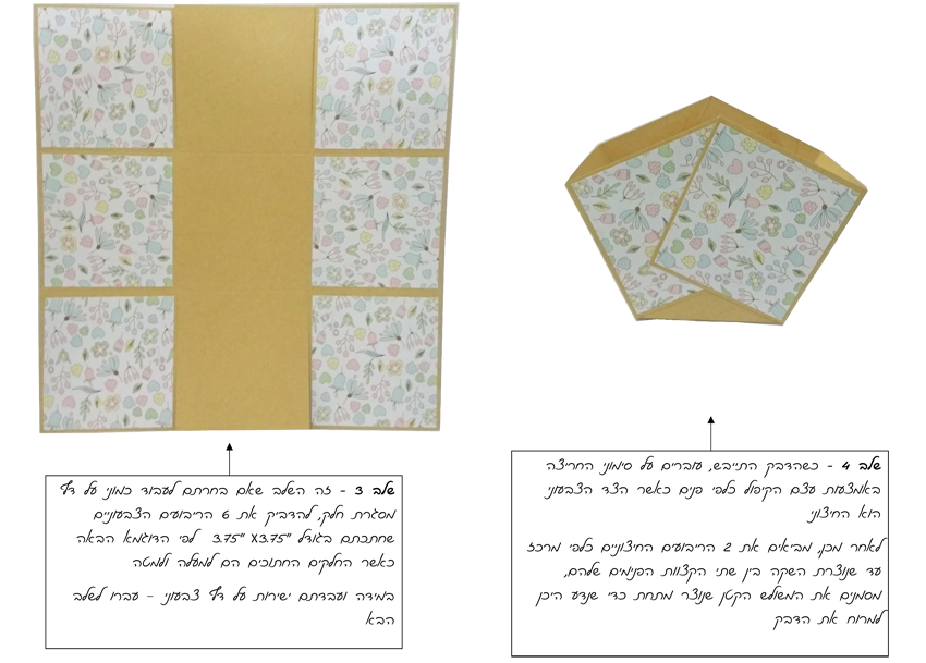 במידה ובחרתם כמוני בחלק – יש לחתוך 6 ריבועים של קארדסטוק צבעוני בגודל 3.75X3.75 (אינצ')