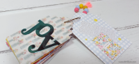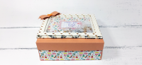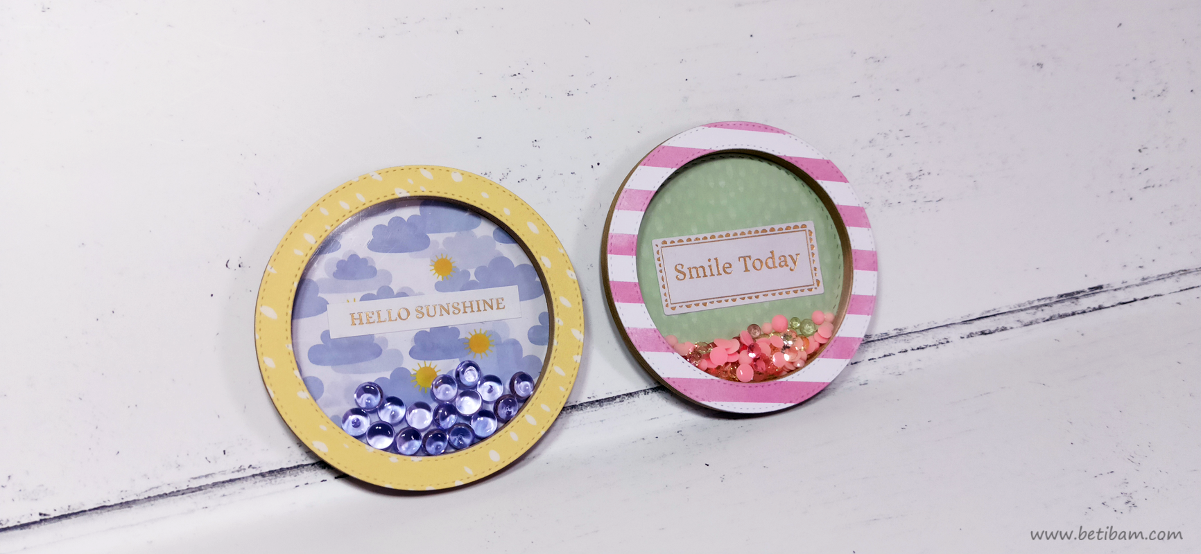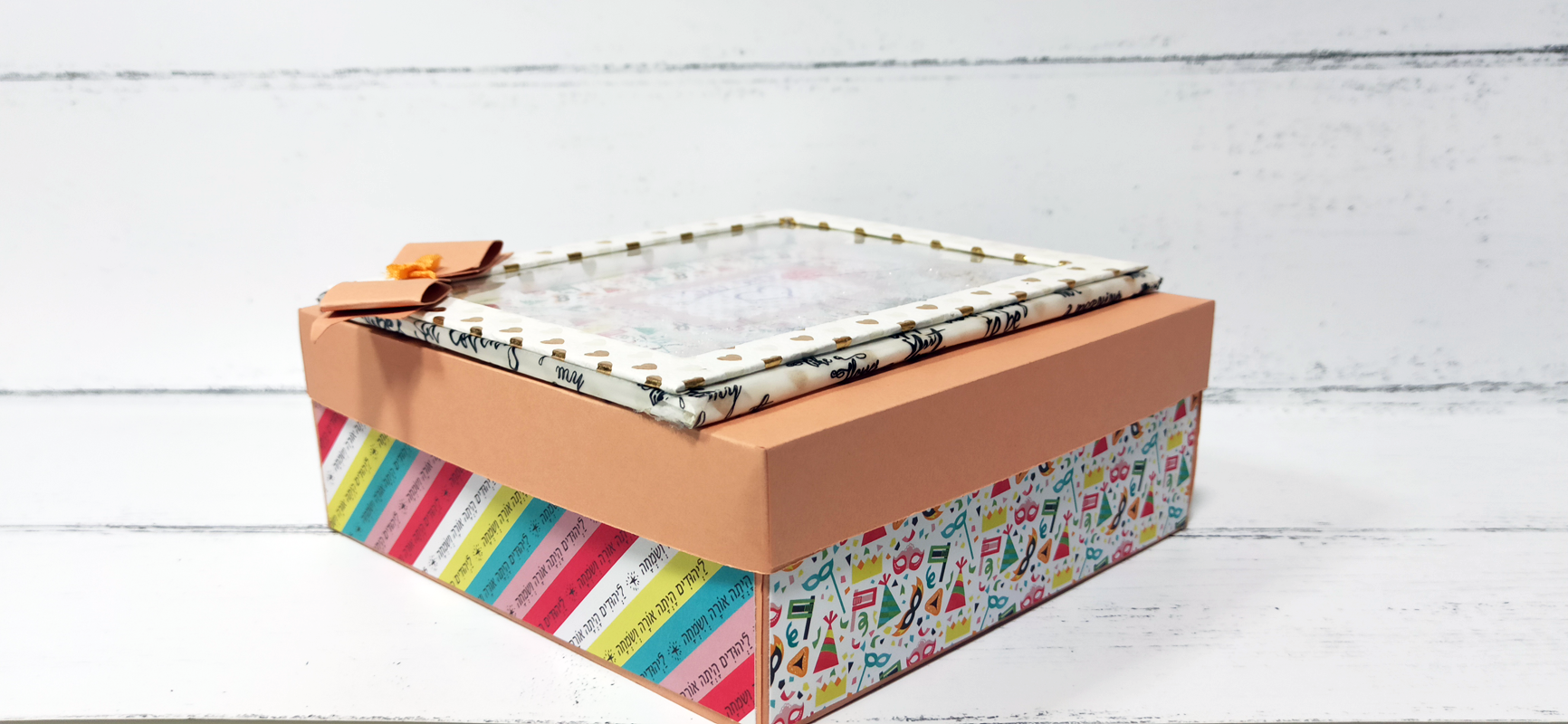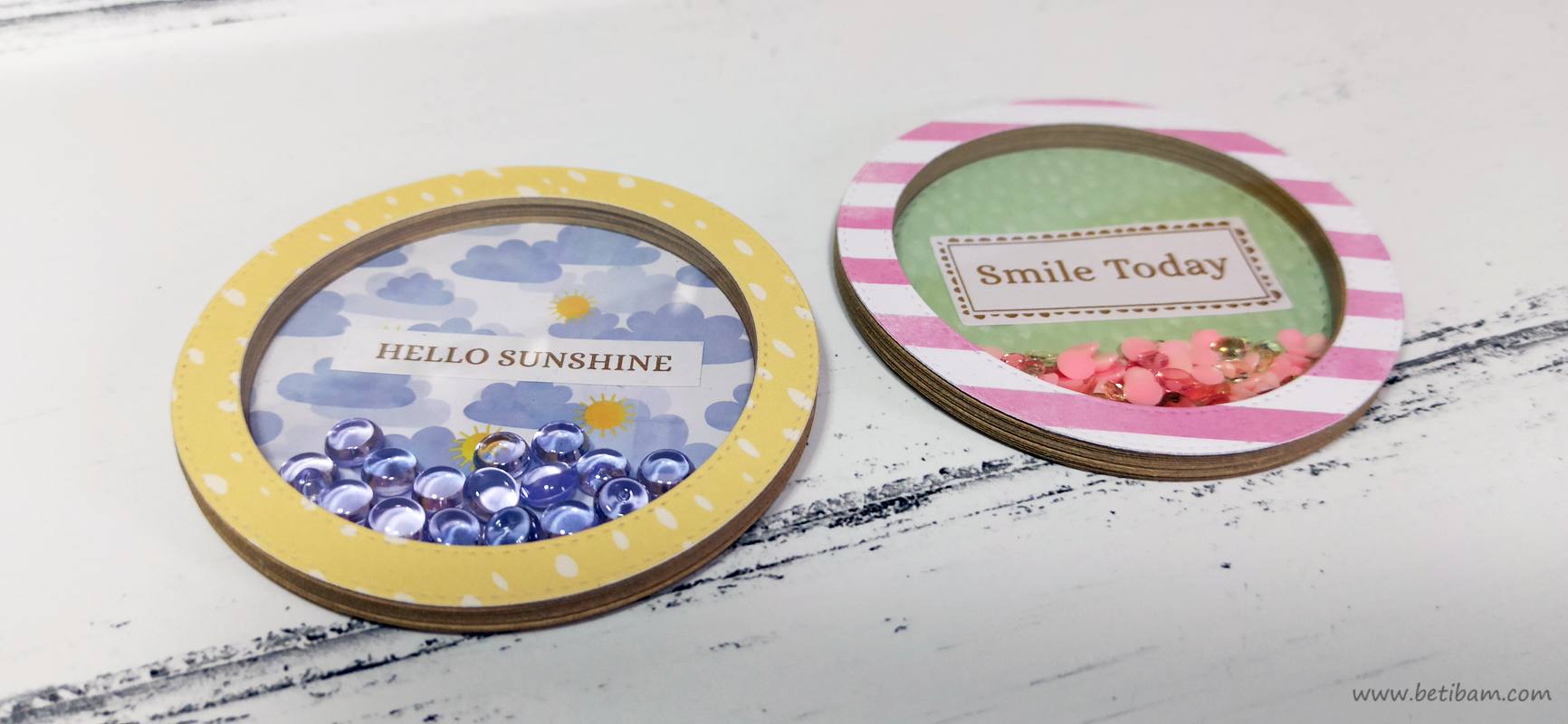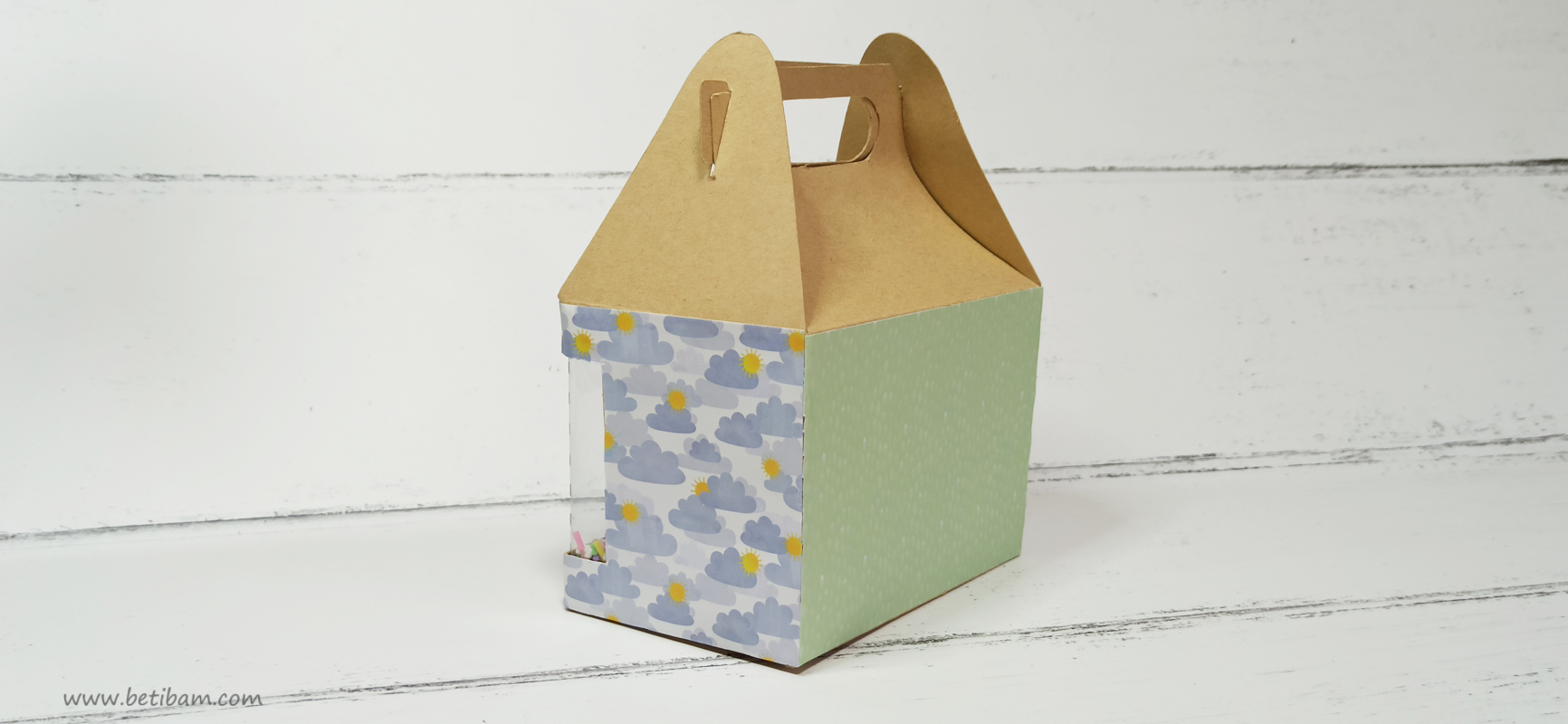קופסת חלון שהיא גם שייקר, בסיס קראפט ועיצוב בניירות מדוגמים וקישוטונים מהקולקצייה של Rosie's Studio - Brand new day,