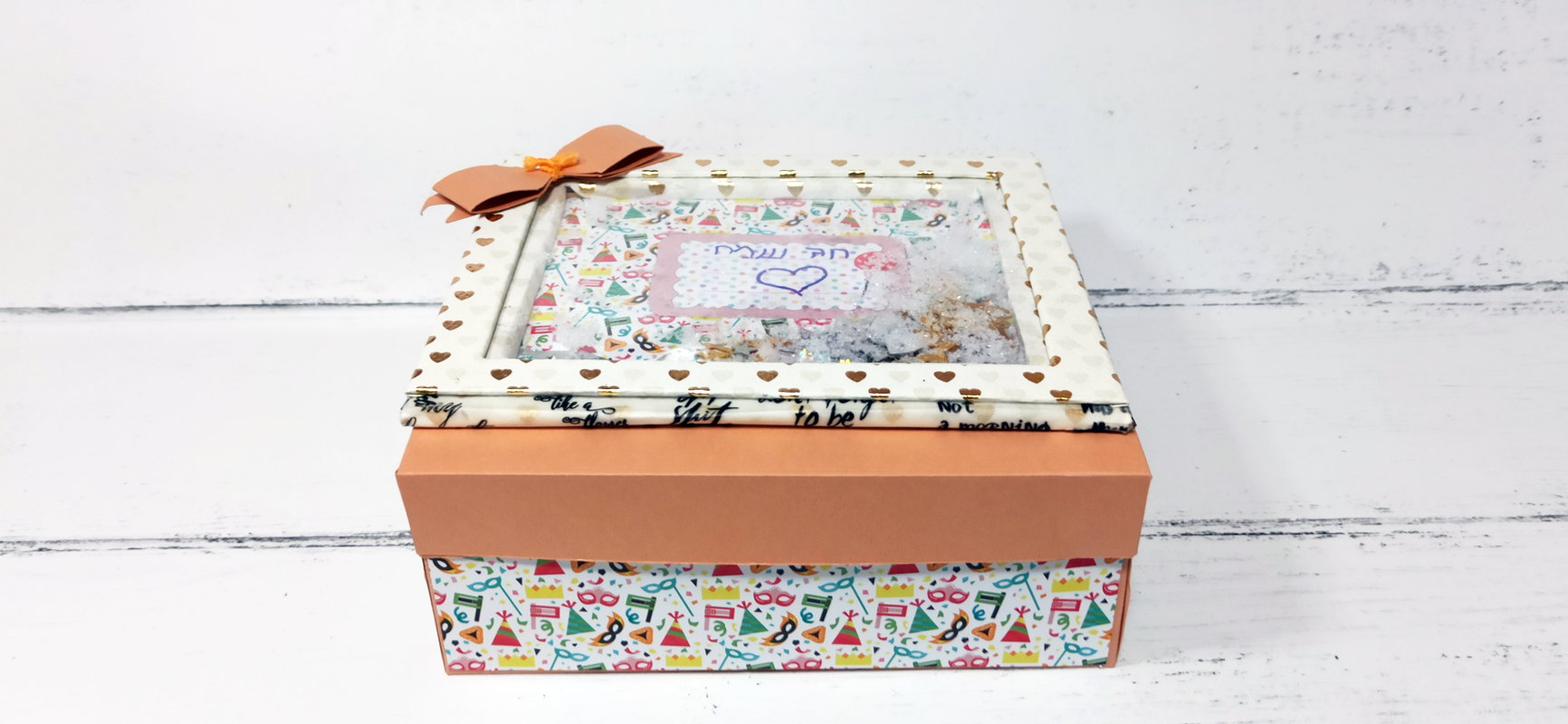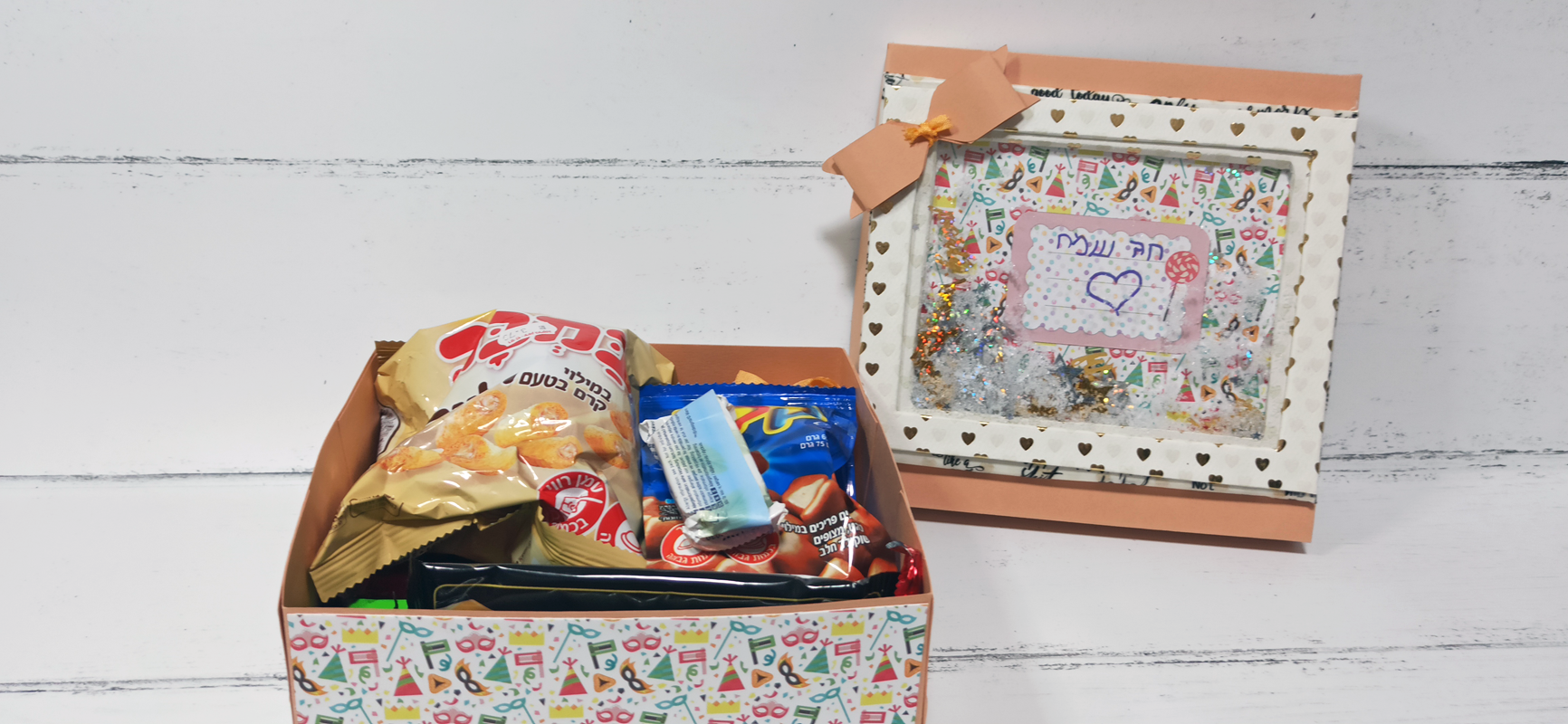 רותי המהממת הכינה לנו אתגר מרשים שבו היינו צריכות להכין משלוח של קופסה או שקית הפתעה מושקעת עם אלמנט חלון/שייקר,