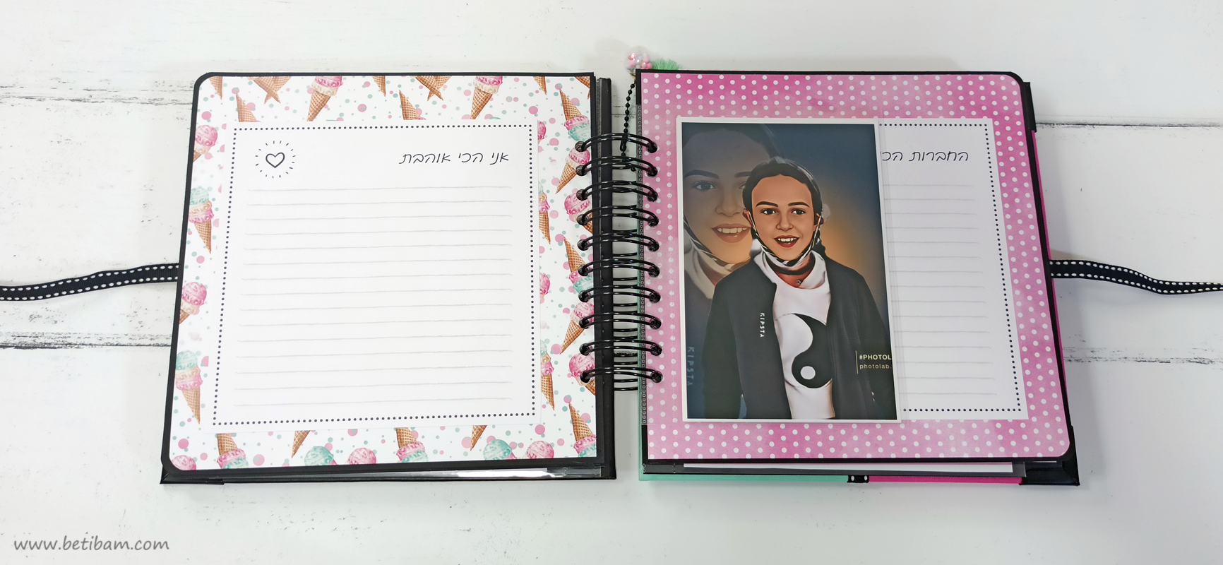 יעלי בחרה את הצבעוניות ואת הדפים המעוצבים שהיא אהבה ואני התחלתי את המסע להכין להן 2 אלבומחברת קפסולת זמן שיהיו כמה שיותר זהים ותואמים כיאה לחברות הכי טובות 😍