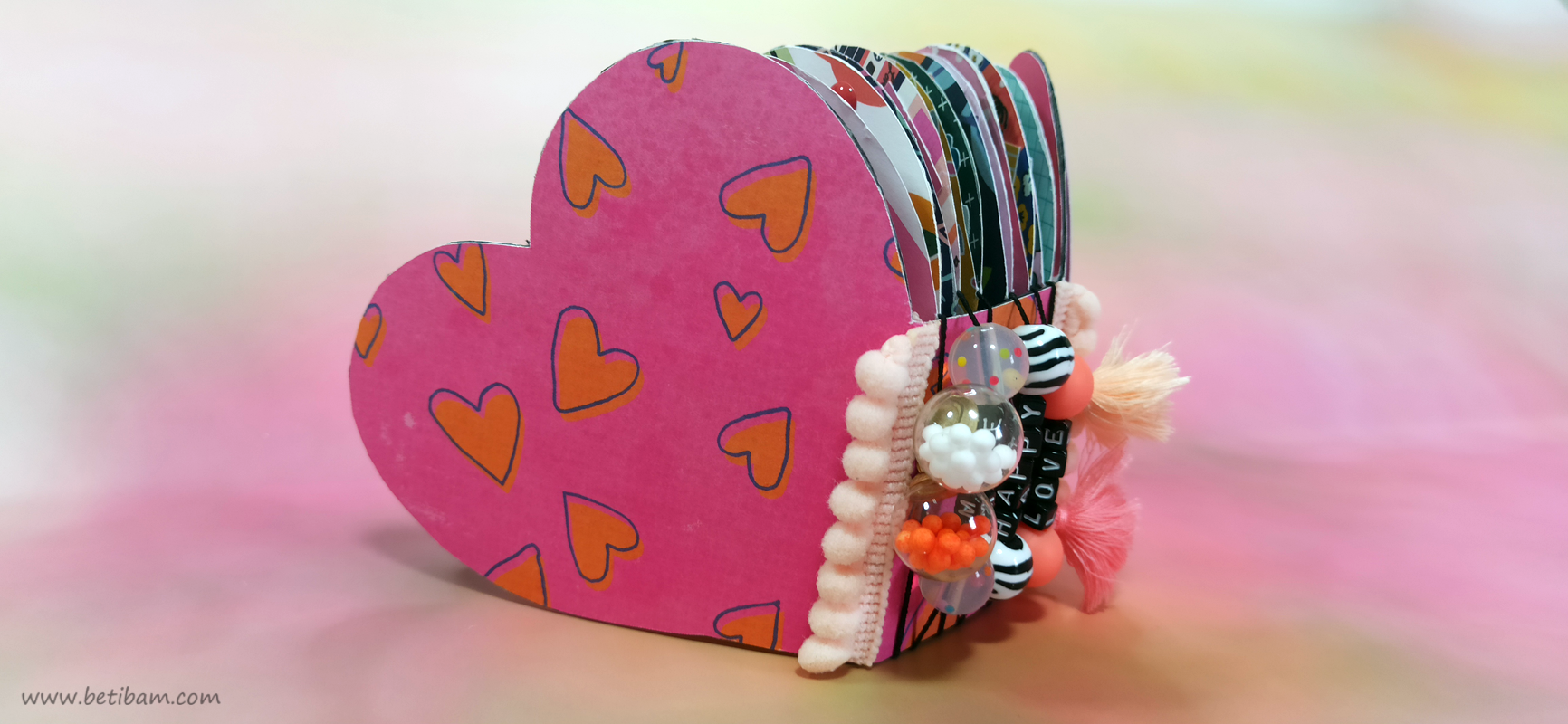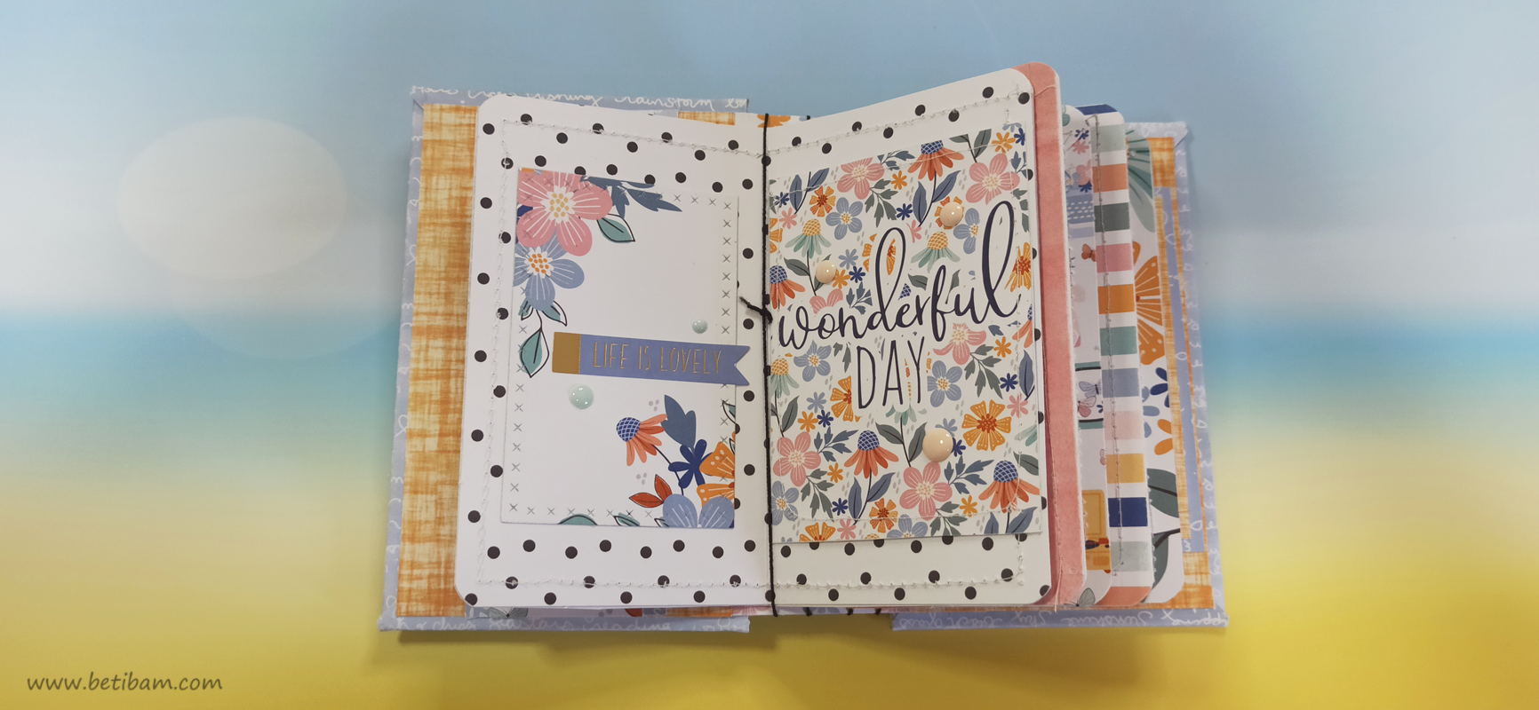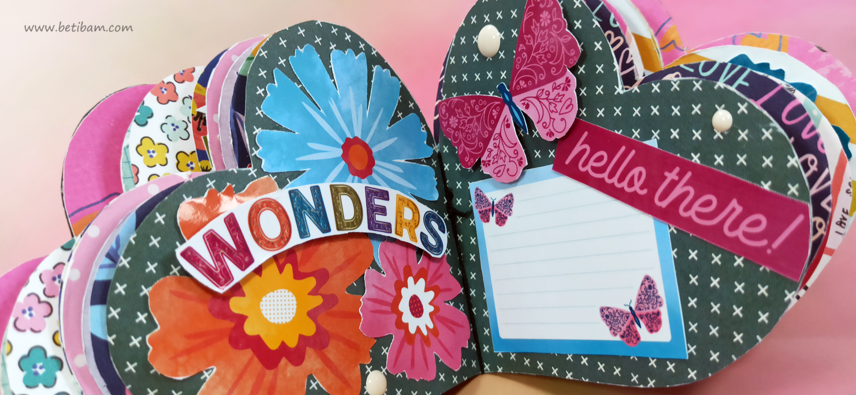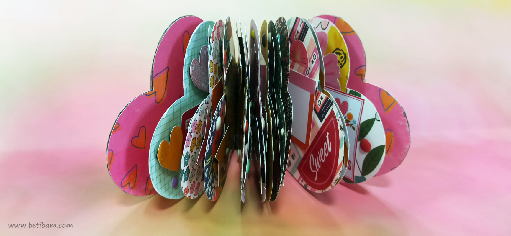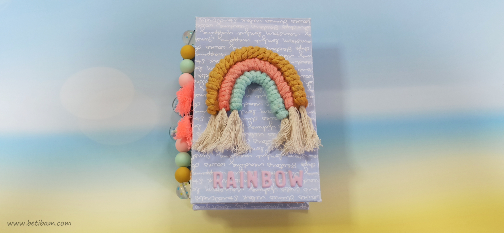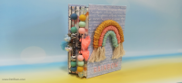 בחוטי הגומי משולבים חרוזים וטאסלים, עיצוב הכריכה בשילוב קשת בענן מחוטי מקרמה. האלבום מעוצב בכרטיסיות מתוך הסטאק עצמו שתפרתי גם אותן, בשילוב מדבקות, וולום ונקודות דביקות.