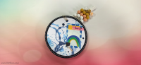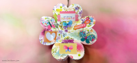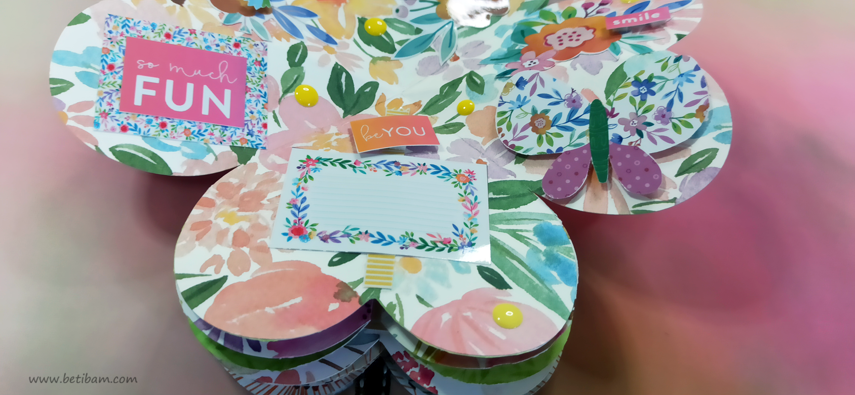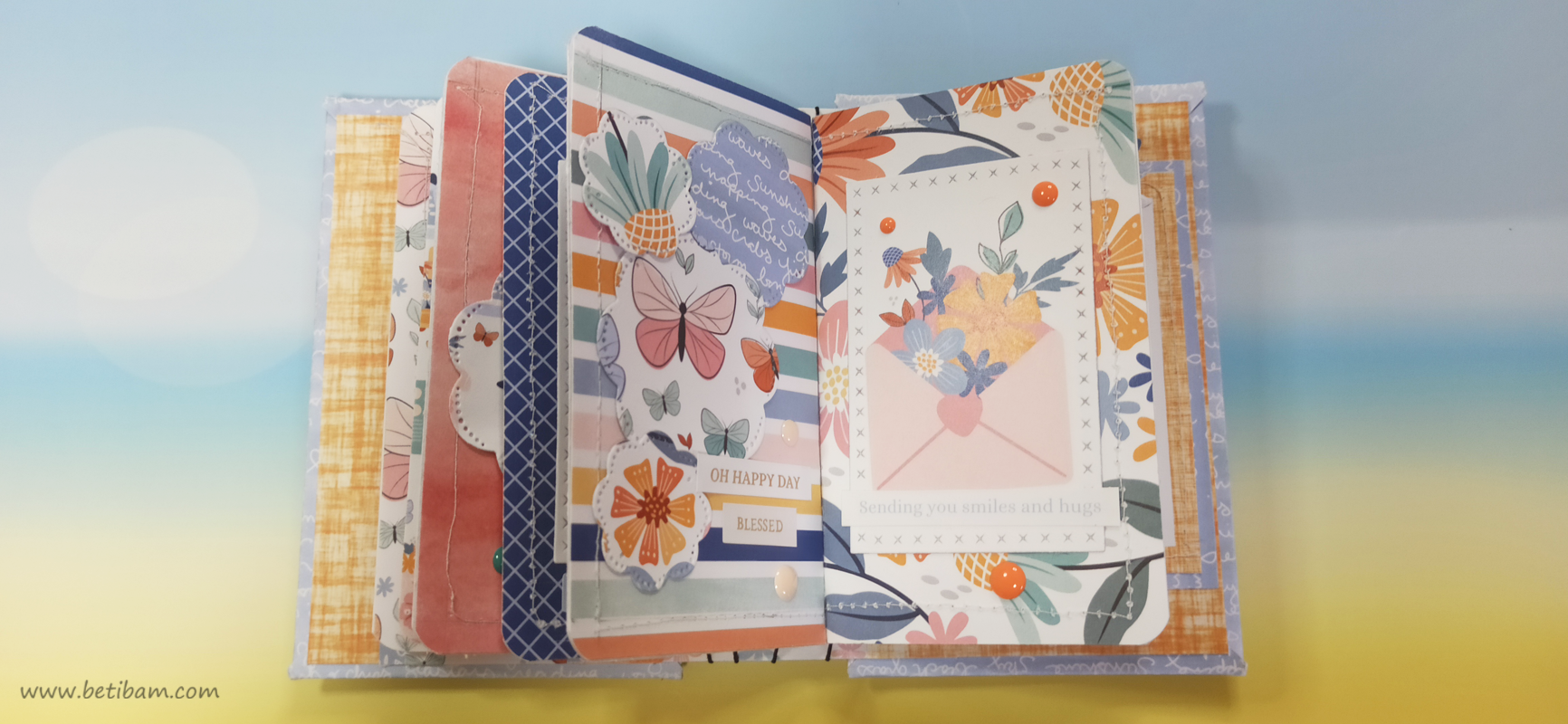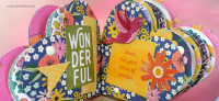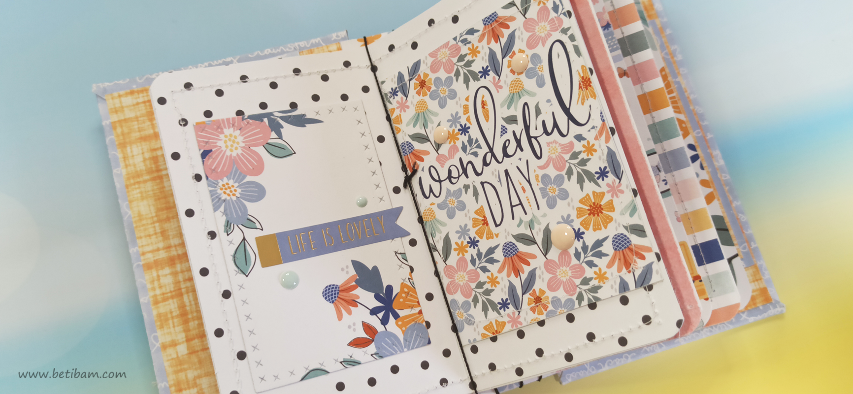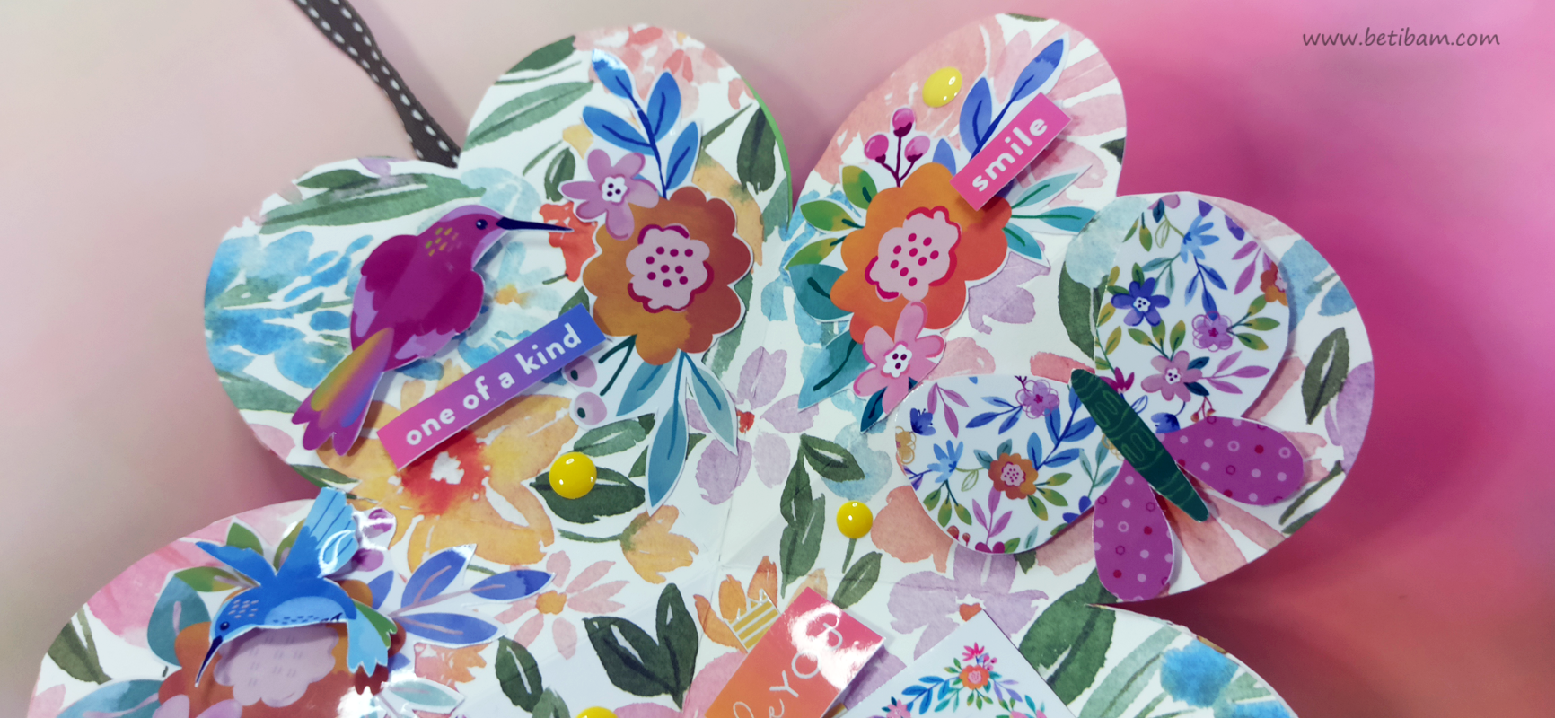 בחוטי הגומי משולבים חרוזים וטאסלים, עיצוב הכריכה בשילוב קשת בענן מחוטי מקרמה. האלבום מעוצב בכרטיסיות מתוך הסטאק עצמו שתפרתי גם אותן, בשילוב מדבקות, וולום ונקודות דביקות.