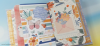הניירות המדוגמים בהם השתמשתי מגיעים מקולקציות שונות וכך גם חיתוכי הנייר והמדבקות שצירפתי, מיקס שלם.