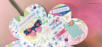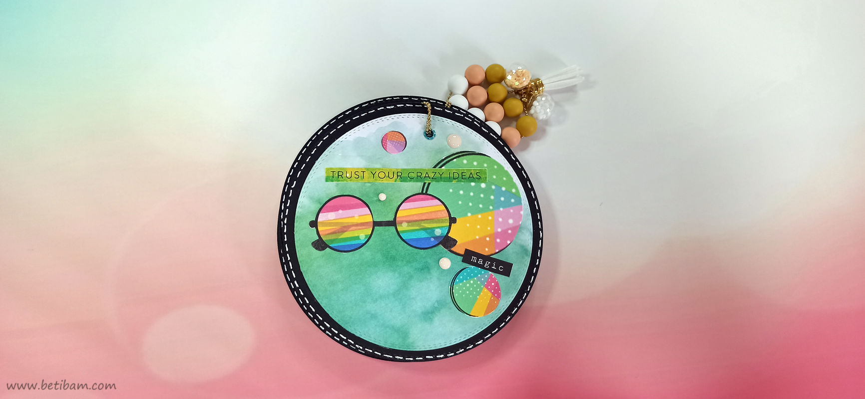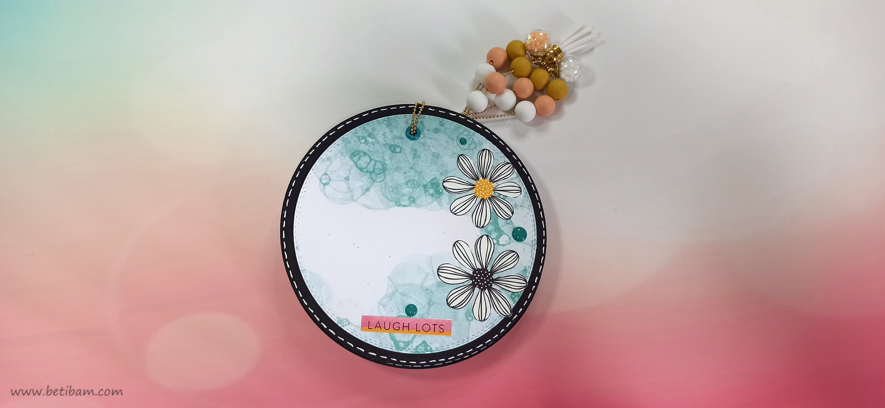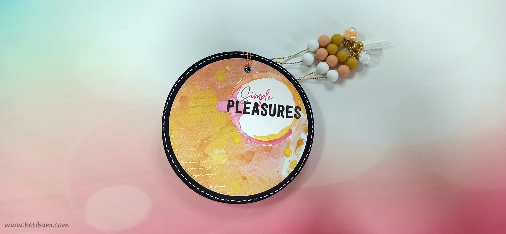 את דפי בסיס והניירות המדוגמים, חתכתי עם 2 תבניות חיתוך עגולות בביג שוט. חיברתי בין הדפים ע"י שרשרת זהב משולבת עם חרוזים וטאסל.