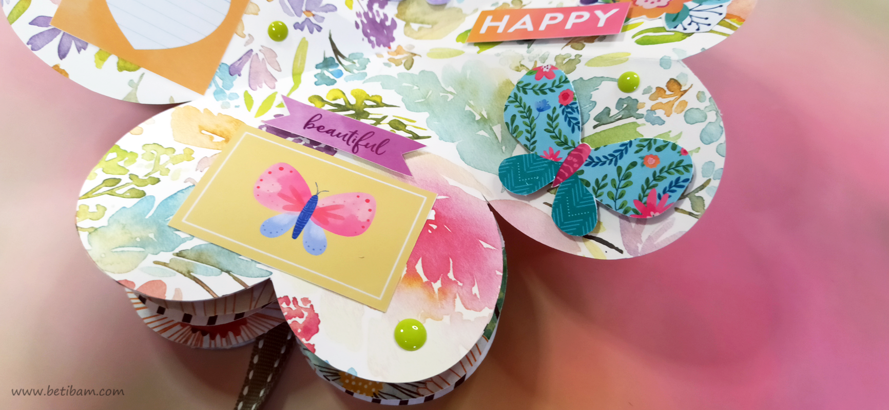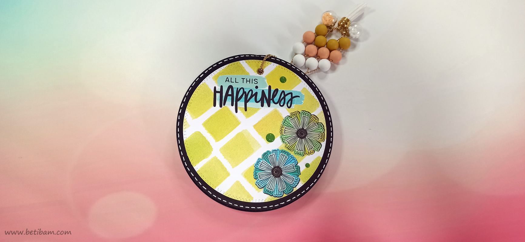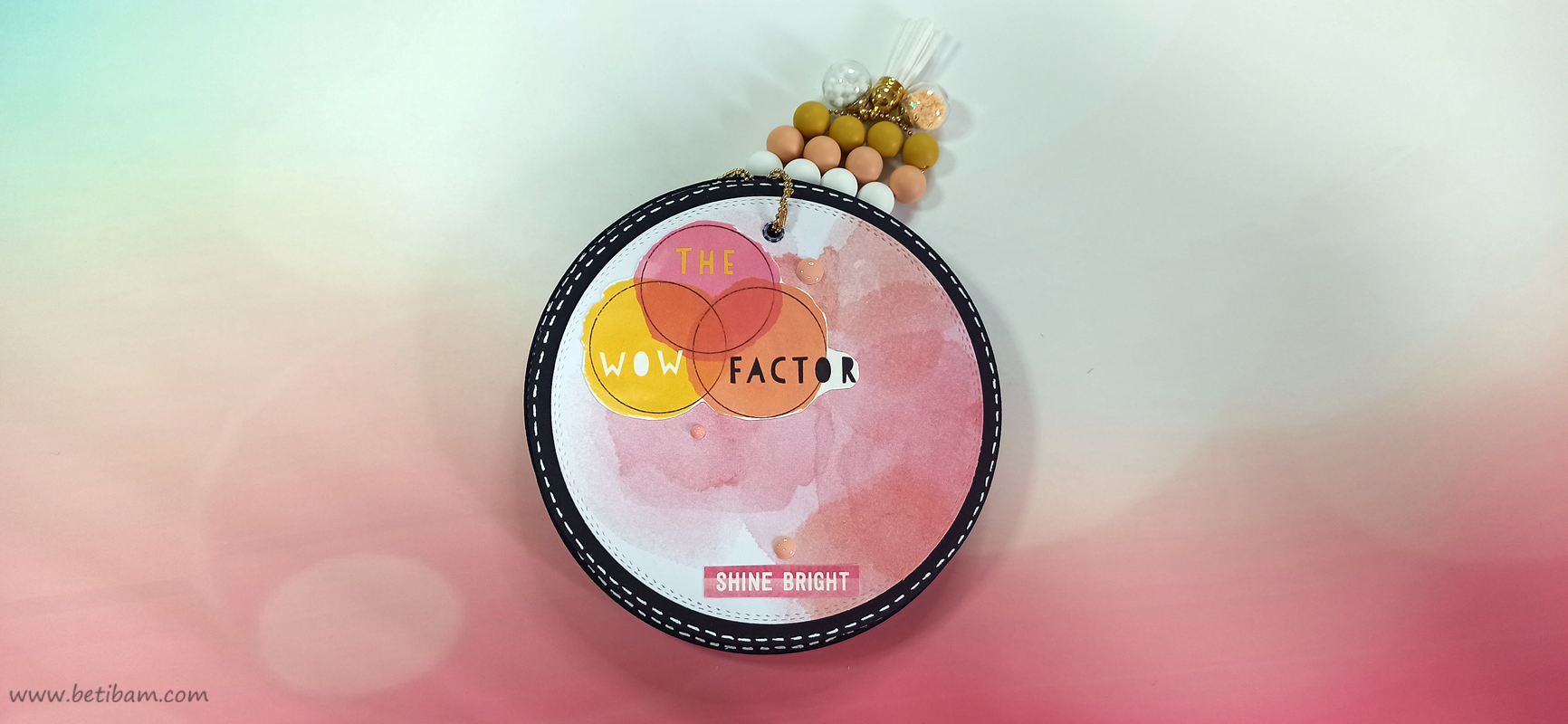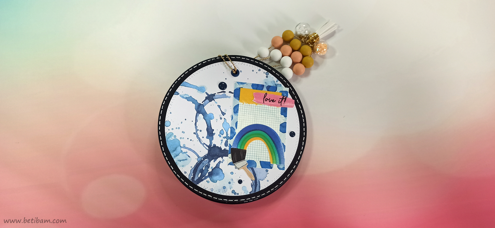 את דפי בסיס והניירות המדוגמים, חתכתי עם 2 תבניות חיתוך עגולות בביג שוט. חיברתי בין הדפים ע"י שרשרת זהב משולבת עם חרוזים וטאסל.