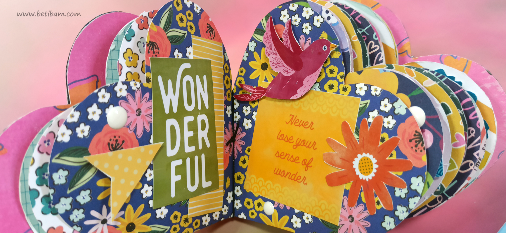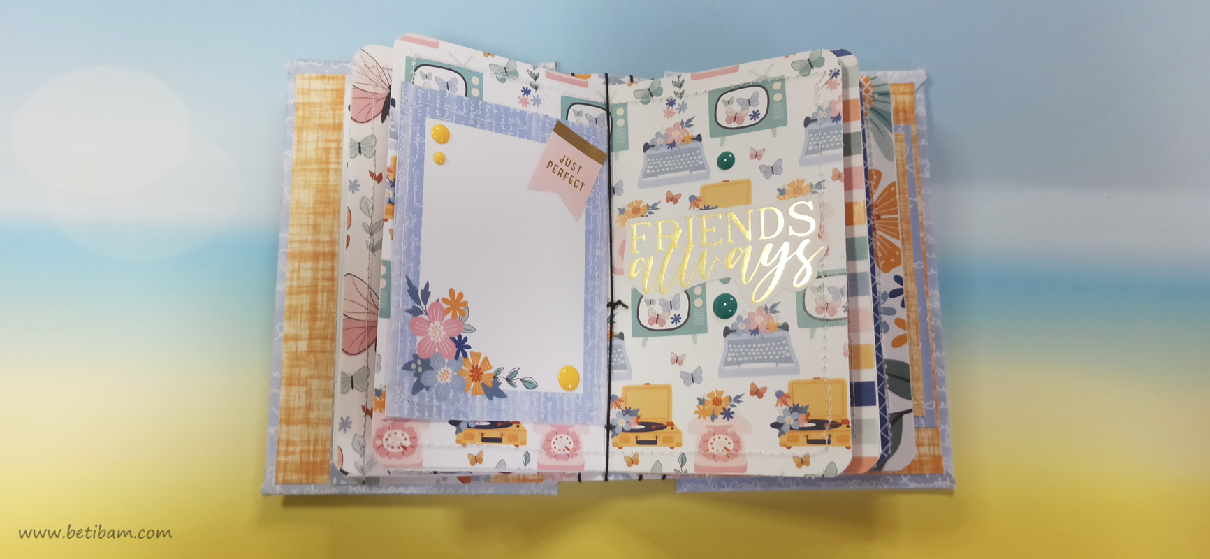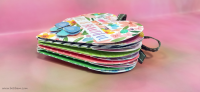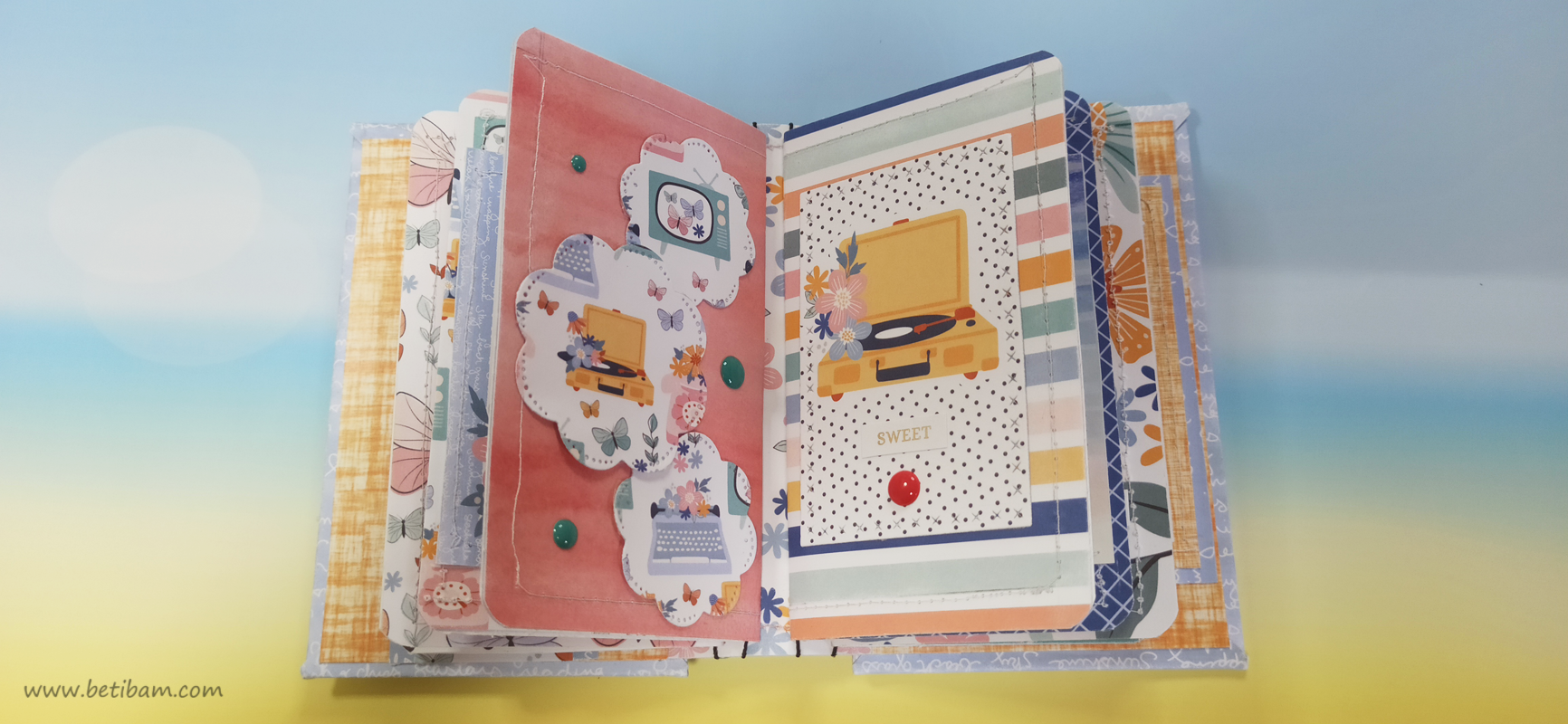 דפי האלבום מחוברים בחוטי גומי לשדרה ומעוצבים בשלל חרוזים וטאסלים.